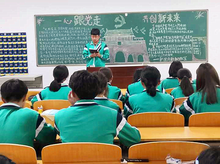 团课上,团支书和同学们共同学习了习近平同志关于青少年和共青团工作的重要系列论述。团支书宣讲了青少年当勇于奋进、在新时代的广阔舞台上大展宏图、展现自我风采的时代要求,倡议同学们树立远大理想、践行社会主义核心价值观,为实现“两个一百年”奋斗目标、实现中华民族伟大复兴的中国梦而勤奋学习。同学们在团课上各抒己见,积极发言,1810班板报内容丰富,着装统一,表现突出。