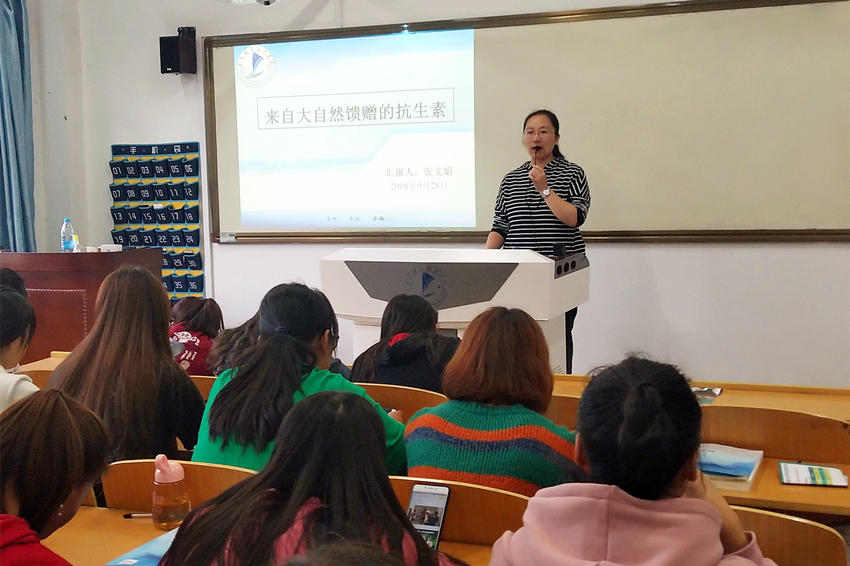 马彩霞以预防食管癌为主题,她从流行病学出发,向员工讲解了食管癌的病理、临床表现、诊断、鉴别诊断和治疗等几个方面。她通过讲述实际案例,将食管癌诊断和治疗中的注意事项作了说明。张文娟老师从抗生素的简介、特点、分类及其合理使用等几个方面对抗生素做了讲解,向同学们介绍了现阶段国内外抗生素研究的最新进展,帮助员工掌握抗生素的相关知识。报告会中,两位老师结合自身研究方向和员工的学习特点,报告会内容丰富、讲述生动有趣,获得在场员工的一致好评。