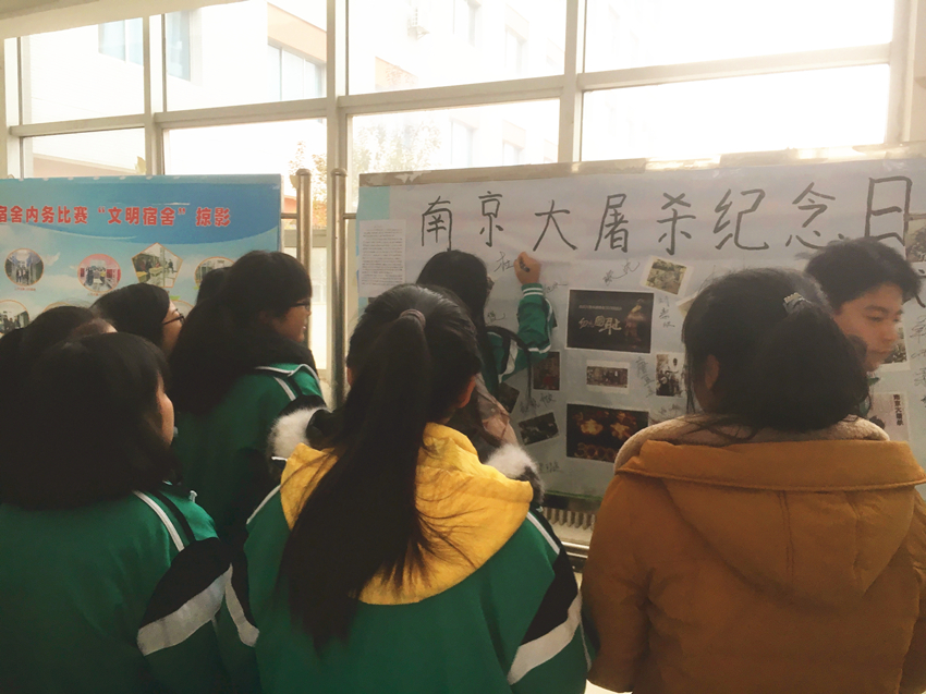 员工代表在南京大屠杀宣传海报上签名