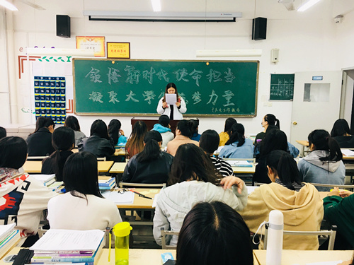 护理高职1611班热议十九大主题班会现场