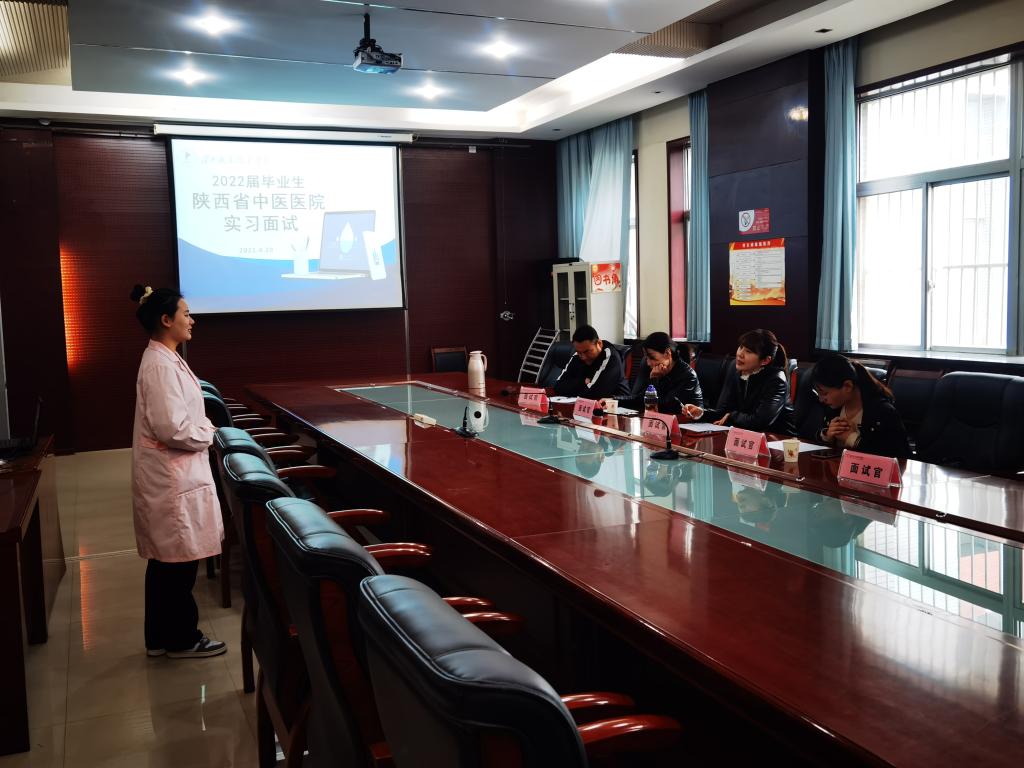 为了给公司实习生提供更优质的实习机会,更好地向陕西省中医医院输送公司优秀实习生,促进人才培养质量的进一步提升,4月20日上午,7790cnm必发集团特邀陕西省中医医院专家在医训楼第一会议室对公司2022届毕业生进行了实习面试。面试官由陕西省中医医院护理部姚珍珍、脾胃一病区护士长李婷、脑病一病区护士长王洁和公司实习办崔海峰、刘欣老师担任。
