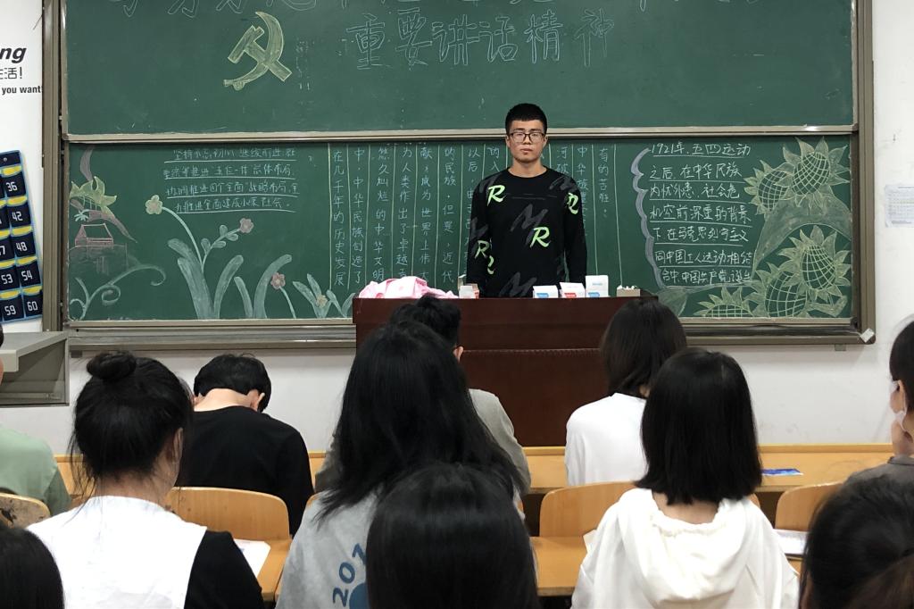 团课上,团支书带领同学们观看了习近平总书记在庆祝中国共产党成立100周年大会上的重要讲话视频,讲解了习近平总书记重要讲话中的重大政治意义和深远历史意义。团支书要求同学们从我们党百年奋斗的光辉历程中汲取力量,以史为鉴,开创未来;深切领会习近平总书记在重要讲话中对青年的深情寄语,做到听党话,跟党走,在“四史”学习教育中增强“四个意识”、坚定“四个自信”、做到“两个维护”。