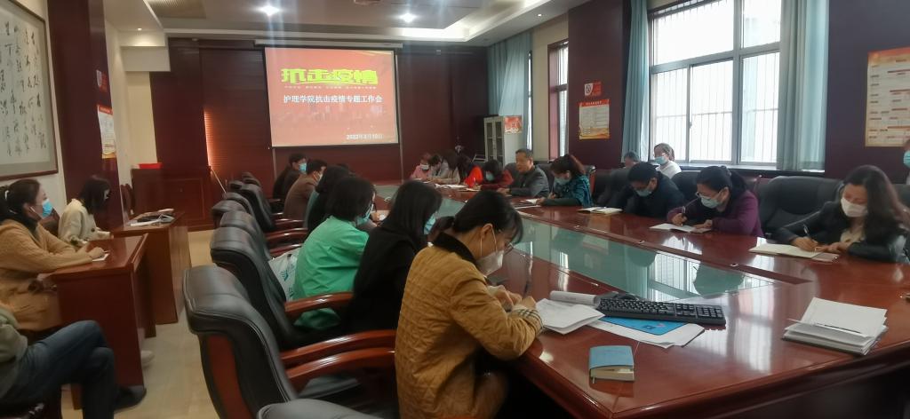 最后员工科科长李博对近期员工重点工作做了安排,强调要以“高举旗帜、响应号召、奋进新时代、启航新征程”主题活动和“宿舍三进”工作为契机,增强工作责任心,切实做好日常教室、宿舍环境消杀、通风换气、卫生清洁等工作,确保全院师生健康。(撰稿:张朵 审核:李晓乾)
