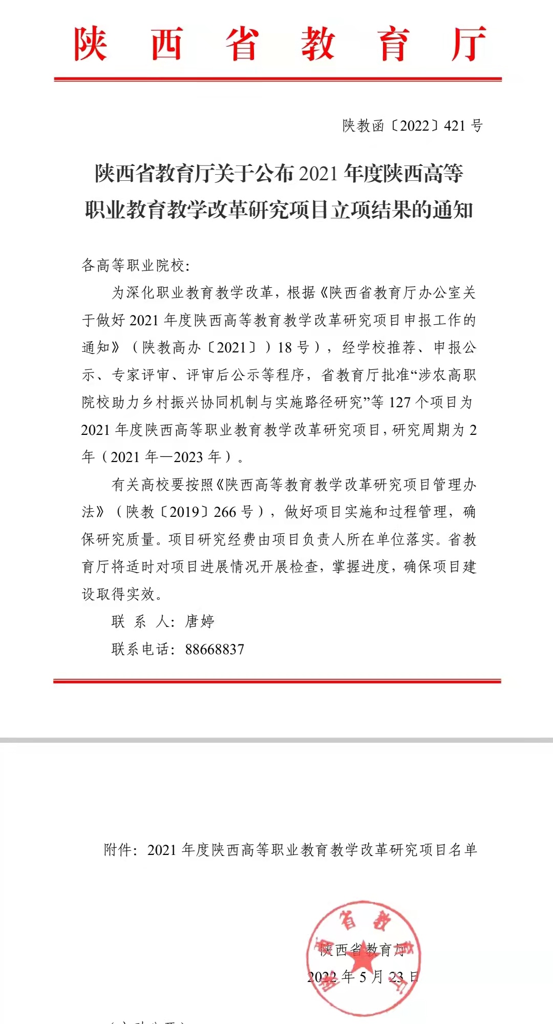 7790cnm必发集团获批立项2项陕西高等职业公司产品改革研究项目
