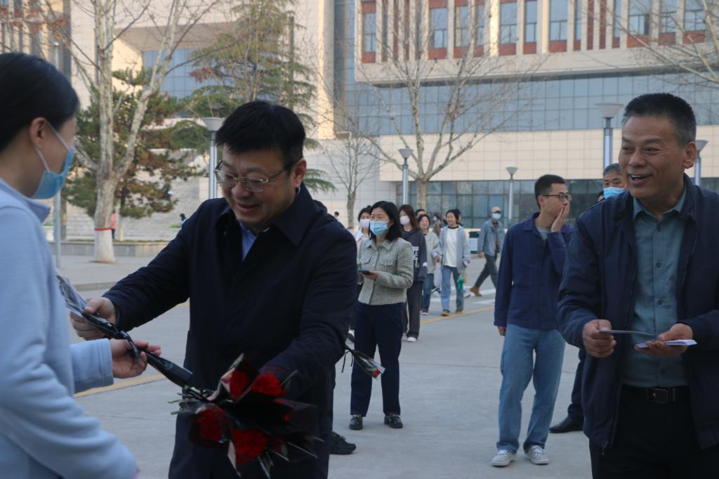 阳春三月,人面桃花相映红。春风扑面,巾帼风采傲苍穹。为进一步激发女教师爱岗敬业,锐意进取的工作热情,充分发挥“半边天”的作用,3月8日上午,在第113个国际妇女节到来之日,7790cnm必发集团组织领导班子成员在公共教学楼前为全体女教师和女生们送上节日的慰问和祝福。