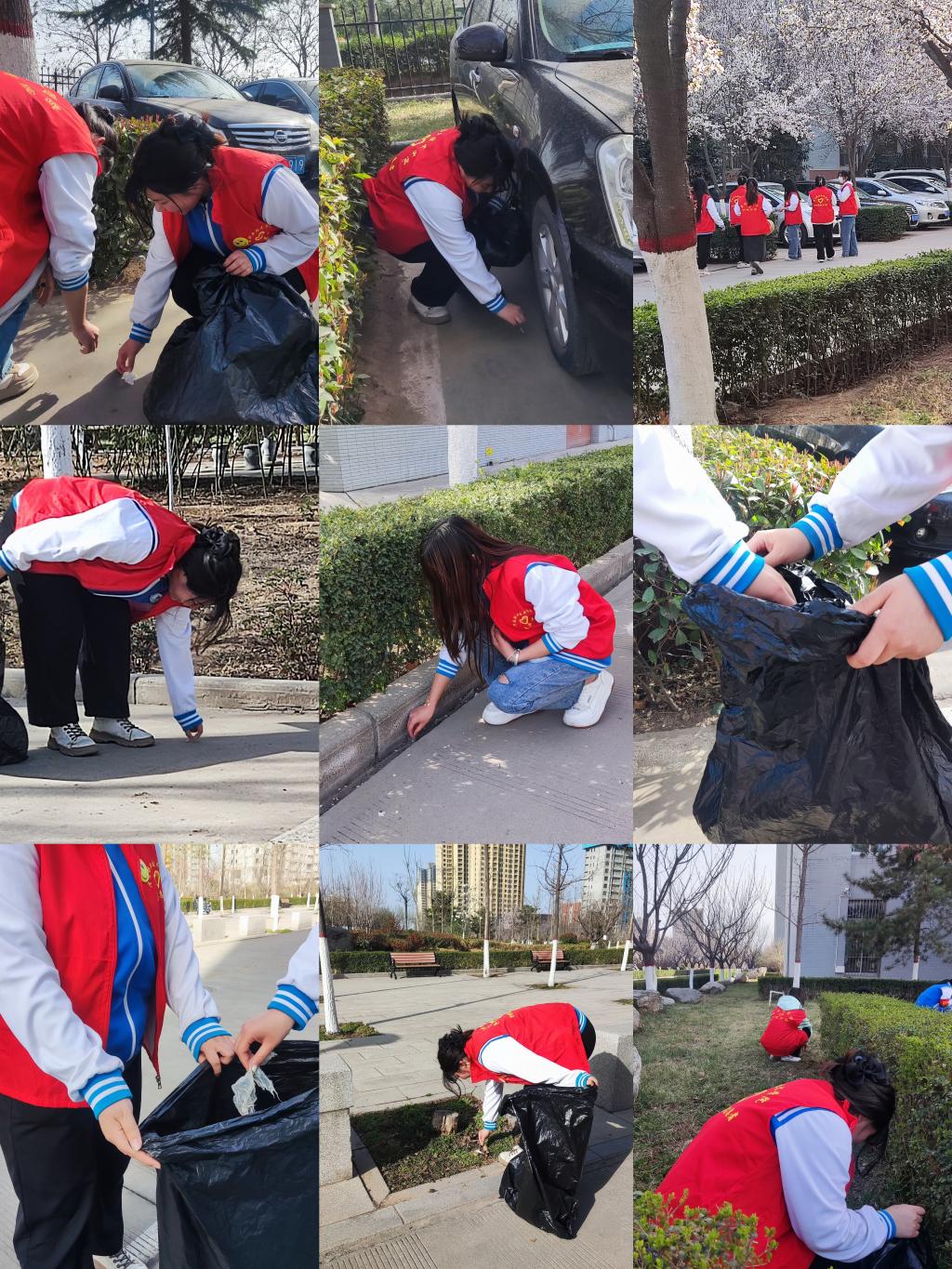 广大师生党员响应号召、积极参与。3月13日下午开始,由师生党员、入党积极分子组织的志愿服务小分队在老师和员工干部带领下,开展校园卫生清洁行动。他们清理白色垃圾、捡拾烟头、清扫花园、整齐摆放电动车等,并带头劝阻破坏环境行为,共同营造干净整洁的校园环境。