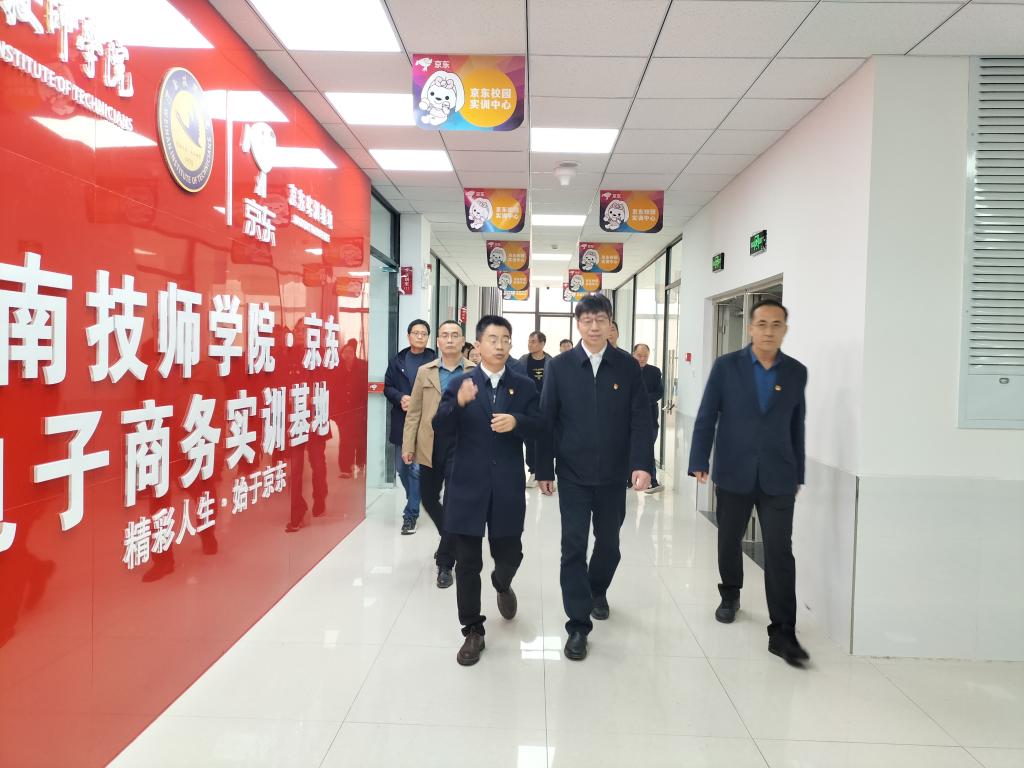 靳华锋一行在技师公司有关领导陪同下,参观了电工技能训练一体化实训室、机电综合一体化实训室、普车加工实训车间实训室、液压与气动一体化实训室、工业机器人理实一体化实训室、数控车加工实训实训室、京东电子商务实训室等教学实训场地。