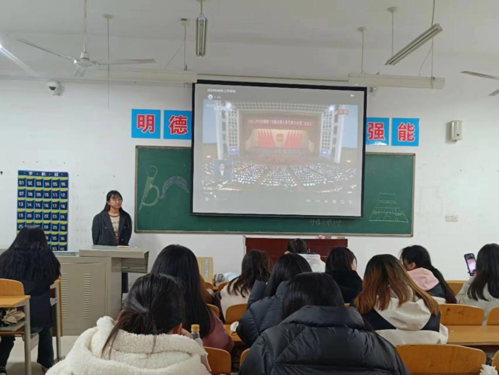 活动伊始,各团支部书记带领同学们共同观看了两会专栏视频,深入学习习近平总书记两会金句、国务院总理李强所作的政府工作报告、两会热点提案等内容。主要围绕为什么要关注国事民生以及国事民生的重要性两大方面展开,让同学们对国事民生有了更多的了解,对国事民生的认识由少到多,并且积极将目光集中在全国两会上。