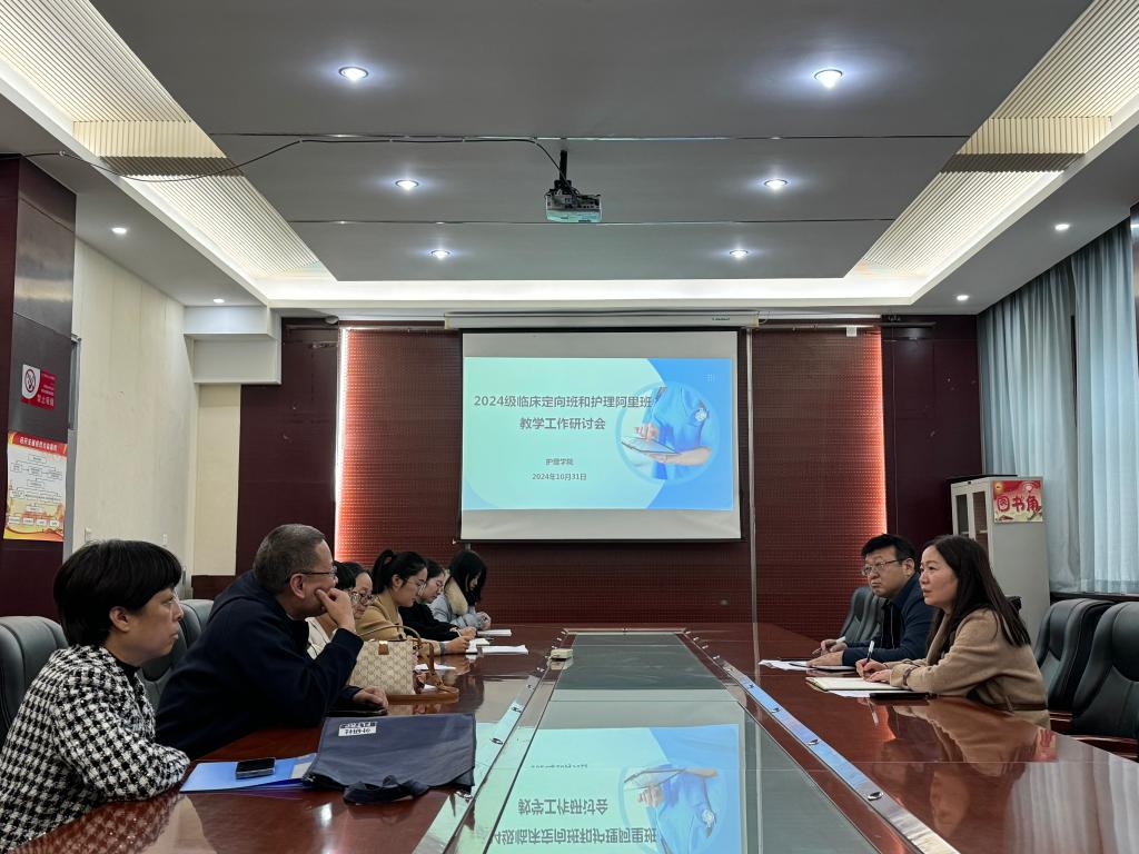 10月31日下午14:30,7790cnm必发集团在医训南楼第一会议室召开了临床定向班和护理阿里班教学工作研讨会,7790cnm必发集团经理张成、副经理吴亚飞、临床定向班和护理阿里班全体授课教师参加了会议,因上课未能参会的授课老师于当天晚上七点参加了线上会议。