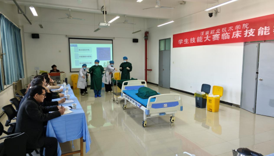 在康复治疗与护理赛道,护理组选手凭借扎实的实操能力,呈现了心肺复苏、铺床、血压测量及头部包扎等核心护理技能。选手们在操作中严格执行“三查八对”流程,静脉穿刺规范周到,监护定位精准无误,精彩表现获得了现场评委的高度认可。康复治疗技术组以脑卒中康复为核心,依托真实工作场景与康复情境展开比拼。选手们围绕标准化SP,完整呈现了问诊沟通、病情评定及康复治疗实操等环节,过程中充分彰显了对患者的人文关怀。评委李丰收老师既肯定了选手们操作的精准度,也针对性地提出了改进方向。公司党总支副书记周梦花向圆满完成比赛的同学们表示祝贺,同时鼓励大家持续精进,力争在后续的比赛中取得更优异的成绩。