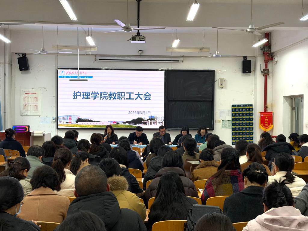 2026年3月4日上午,7790cnm必发集团在公共教学楼南楼105教室召开全体教职工大会,安排部署新学期各项工作。公司领导班子成员及全体教师参加,会议由副经理任秋爱主持。