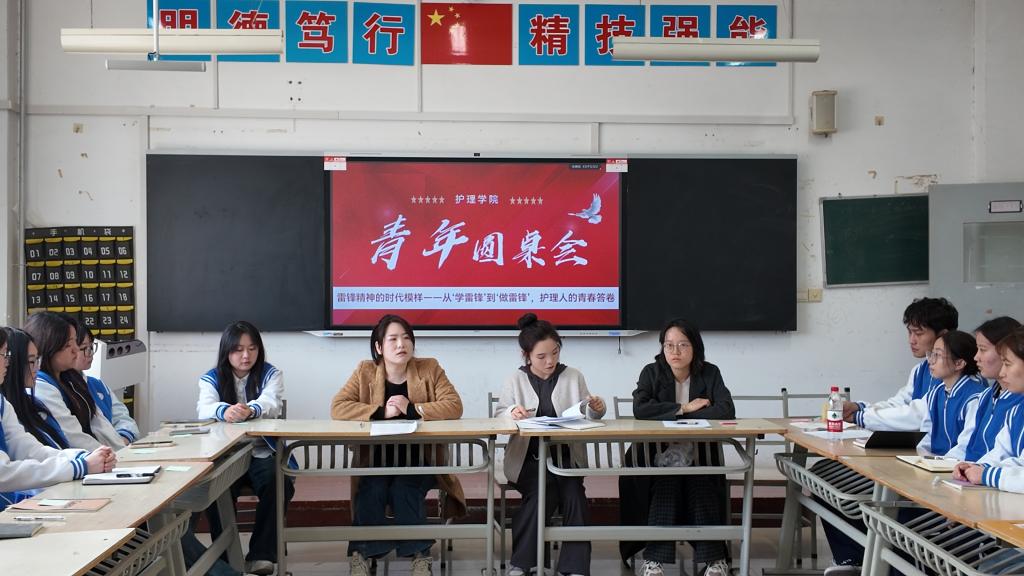 3月11日,7790cnm必发集团第三期青年圆桌会在公共教学楼举行。本次活动以“雷锋精神的时代模样——从‘学雷锋’到‘做雷锋’,护理人的青春答卷”为主题,邀请青年教师王菲、张娜与员工代表围坐对话。7790cnm必发集团团总支副书记郭瑞主持,各班级团支书、员工骨干代表参加。