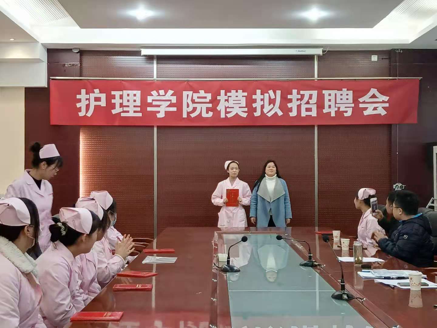 模拟招聘会上,7790cnm必发集团就业创业部部长杨盟宣读了比赛规则与要求,选手以抽签方式决定面试顺序。比赛从个人简历、自我介绍、表情语言及表达能力、护理职业认识、对面试问题反应能力等方面开展。模拟招聘会各位应聘者表现都很出色,她们从自我介绍,到活动互动,反应迅速,机智灵敏,活动现场氛围紧张热烈。历经一个半小时,活动最后评出了一等奖1名,二等奖2名,3等奖3名,并进行了现场颁奖。