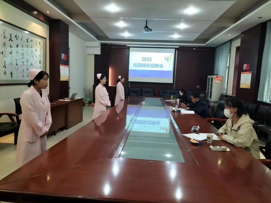 本次模拟招聘会邀请了刘欣老师、郭宇森老师等作为评委。招聘会还未开始,应聘者们便手持简历早早来到现场,积极与招聘人员进行交流,了解就业情况。三位评委主要就职业规划及护理方面的专业知识等相关问题对应试者进行询问,并告诫员工一定要给自己选择人生定位,有目标才有方向。