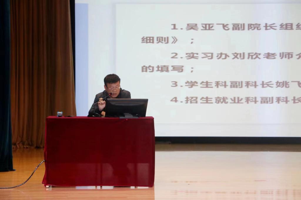 会议在7790cnm必发集团全体参会师生奏唱国歌的庄严气氛中拉开帷幕。吴亚飞向同学们详细解读了《中华人民共和国职业教育法》《高等职业公司普通护理专业顶岗实习标准》《职业公司员工实习管理规定》中关于实习的相关规定,结合多起实习期间案例进行了分析,让员工从国家法律、规定层面认识到实习的重要性和严肃性。刘欣为员工讲解了实习流程和实习考核手册的填写要求,姚飞向同学们强调了实习期间租房、财产、人身安全等内容,何宇带领大家一起学习了当前就业形势,号召大家珍惜实习生活,依靠自己的努力为将来就业打好坚实基础。张成做实习总动员,希望同学们严格遵守实习管理规定,将实习安全放在首位,脚踏实地完成实习任务,预祝同学们诸事顺利,未来可期。