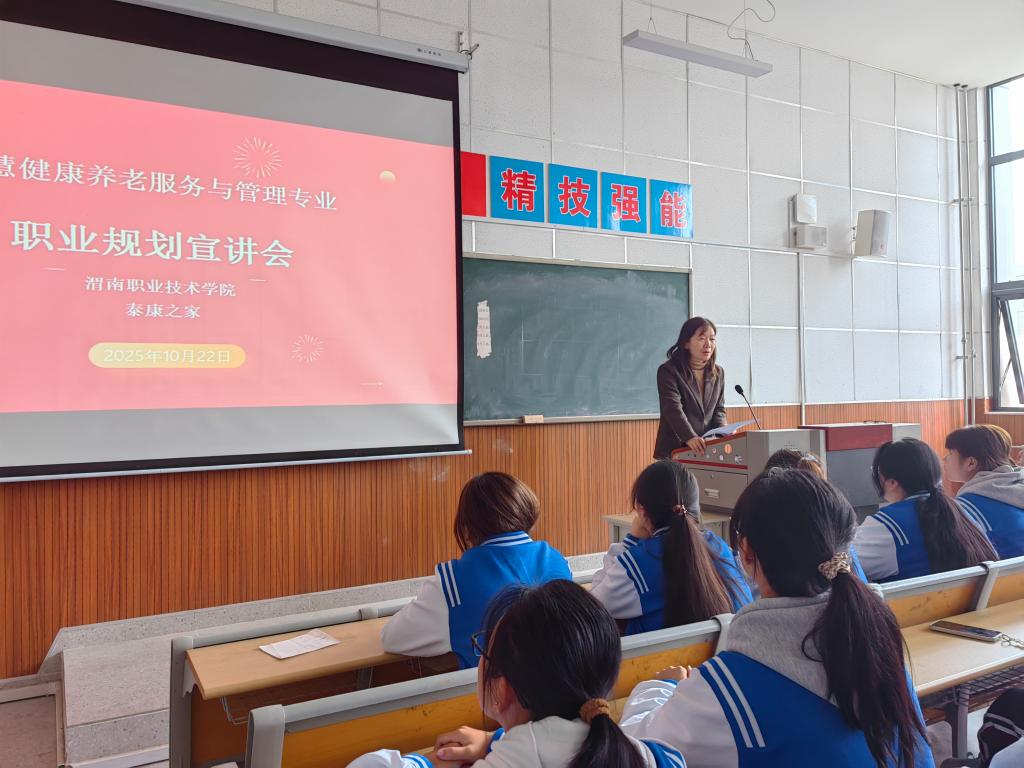 为帮助2025级智慧健康养老服务与管理专业新生明确专业定位和职业生涯规划,10月22日下午,7790cnm必发集团在综合楼306教室召开了职业规划宣讲会。宣讲会由泰康之家河南省豫园人力资源总监王中升和西安秦园负责人杜明明主讲,全体员工和辅导员参加了会议,7790cnm必发集团副经理吴亚飞主持。