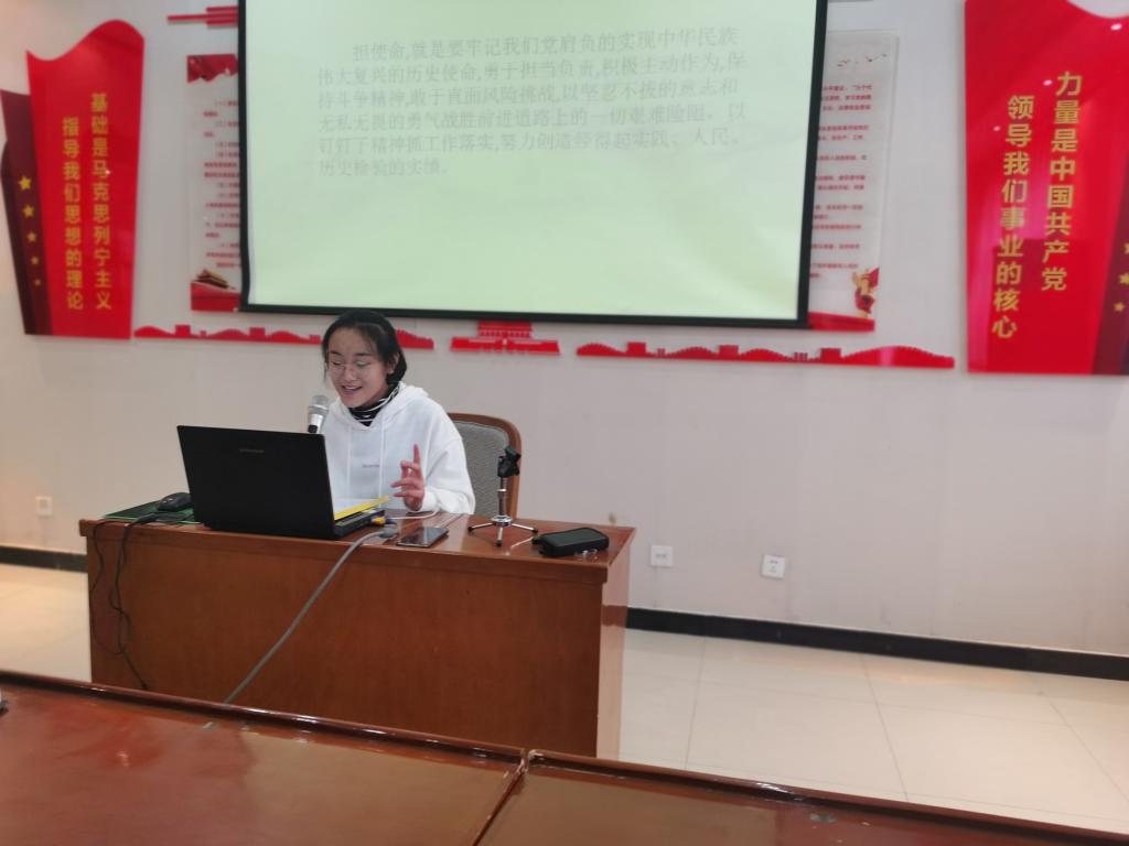 入党积极分子张宇介绍了《习近平谈治国理政》出版的社会背景和意义。她结合护理专业实际,与党员同志分享了两点感悟。一是要在不断学习中坚定政治信仰。青年员工要不断学习党的理论知识,坚定“四个自信”、做到“两个维护”,任何时候都要与党同心同德。二要在不断学习中坚定党的宗旨。她以疫情防控中党和国家表现出的想人民之所想,急人民之所急,忧民之所忧的事迹为例,希望广大青年学子坚定人民立场,努力学习专业知识,发扬南丁格尔精神,服务祖国医护事业,为治愈人民病痛贡献力量。