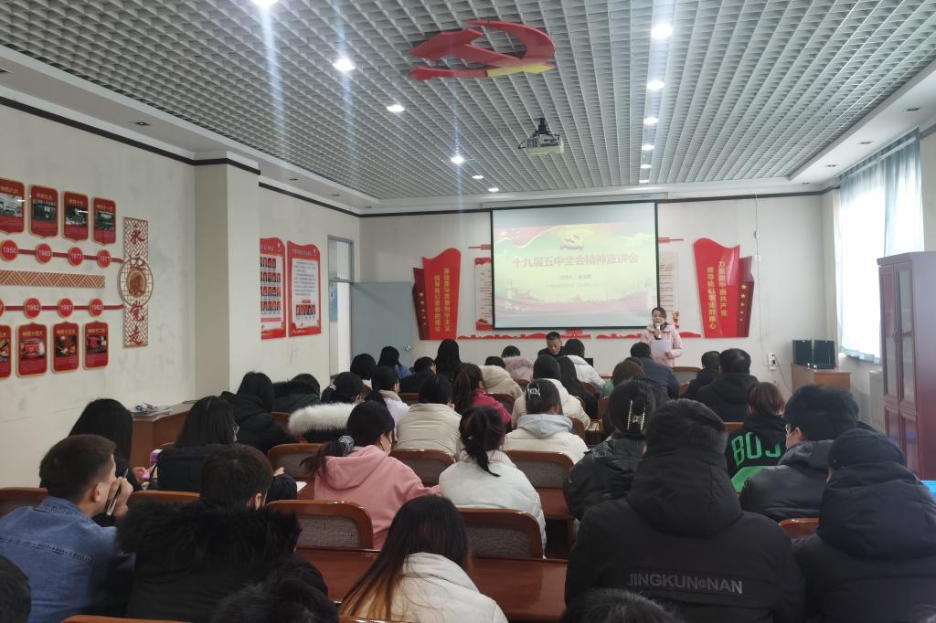 吴运胜以《学习贯彻党的十九届五中全会精神》为题,从《建议》的研究背景、形成过程和框架内容,阐述了党的十九届五中全会的重大意义;从深刻领会决胜全面建成小康社会的决定性成就,全面理解新发展阶段、新发展理念、新发展格局,准确把握“十四五”时期经济社会发展的方针原则、主要目标、重点任务、6个目标及9个2035年远景,始终坚持党的全面领导等五个方面,对党的十九届五中全会精神进行了全面宣讲和深入解读。他希望广大师生能深入领悟全会精神,并贯彻落实到实际工作当中。他要求各团支部书记及辅导员把会议精神传达给每一个员工,各教师代表把会议精神传达给本教研室老师,让全院师生掀起学习高潮,并深刻理解全会精神,贯彻落实于实际行动中。