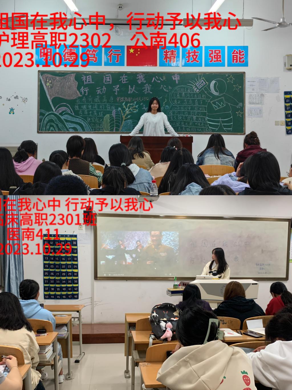活动上各团支部书记重点围绕“爱国主义的内涵”“怎样践行爱国主义”这两个方面展开讲述,随后组织同学们观看爱国电影《建国大业》。该片讲述了从1936年到1949年中国共产党领导下的革命斗争和建国进程。影片涵盖了许多历史事件,包括抗日战争、蒋介石政府与共产党之间的内战、解放战争等。影片还展现了许多历史人物,如毛泽东、周恩来、朱德等,并深入描绘了他们在革命中的作用和贡献。在观看电影过程中加强了同学们对中国革命文化的了解,提高了爱国意识。