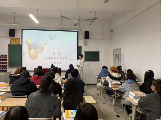 11月4日下午,妇儿教研室副主任、青年骨干教师朱艳在公北211进行了《妇产科护理》的公开课。她基于当前社会普遍存在的妊娠高血压疾病问题,对此类孕妇的护理进行了深入细致的讲解。她从妊娠高血压的病因、病理、分类与症状等方面深入浅出,讲解了疾病的产生机理和常见症状,科普了常用的治疗措施并提出专业的护理建议。