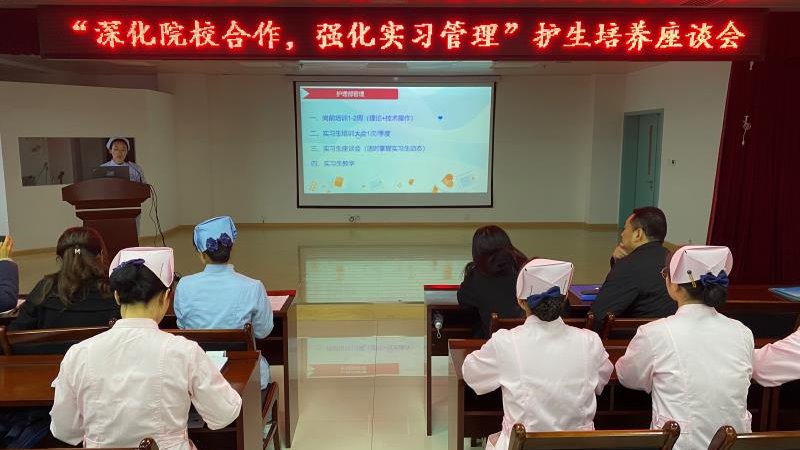 市妇幼保健院护理部主任冯瑜对公司实习检查表示了高度重视和热烈欢迎,在学术厅组织了“深化院校合作 强化实习管理”的座谈会。座谈会上护理部干事常晶介绍了实习管理制度和实习流程,两位带教组组长介绍了科室培训计划、课程设置以及科室规定,三位优秀实习生分别汇报了四个月实习收获、对未来学习的计划和对带教老师真挚的感激之情。通过与实习生的座谈,公司看到了员工对医院管理的肯定,对带教老师认真负责态度的感恩,他们不仅收获了知识与技能,更懂得了和患者的沟通技巧,培养了对患者的仁爱之心;通过与医院带教组长的沟通,也收集了医院对公司人才培养给出的宝贵建议。