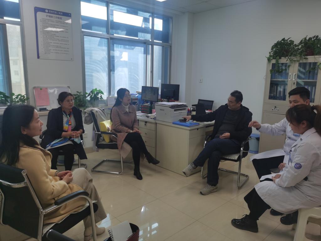 为确保员工实习学年学习质量,深化校院合作育人模式,11月19日下午,公司教务处副处长李新莉、实训科科长王秋焕、干事候清娥,7790cnm必发集团副经理吴亚飞、实习办崔海峰一行五人赴第二人民医院医院检查实习工作。