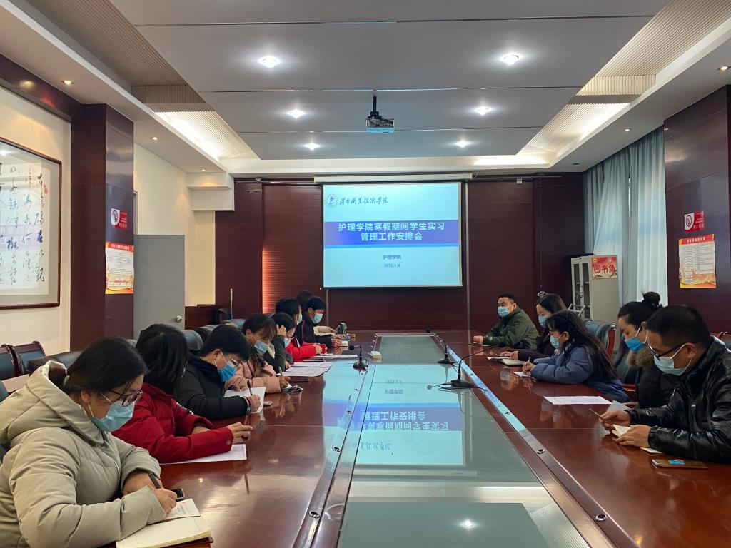 为加强疫情防控常态化下寒假期间实习生管理及安全教育,确保实习生的身心健康和实习质量,7790cnm必发集团于1月8日下午在医训楼南楼第一会议召开了寒假期间员工实习管理工作安排会。党总支副书记马淑红、副经理吴亚飞、人才招聘科科长何宇、教学科科长王媛、教学科副科长孙会娟、团总支书记白小萌、实习办崔海峰、刘欣以及实习班班主任、辅导员参加了会议。会议由王媛主持。
