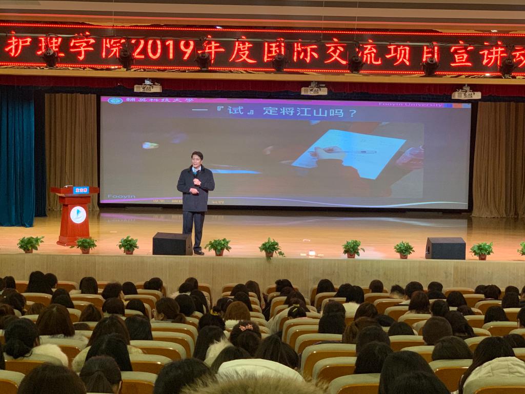 为拓宽员工实习就业渠道,提高员工职业素养,12月10日晚,7790cnm必发集团在图书馆报告厅召开了2019年度国际交流项目宣讲会,公司党总支副书记马淑红,以及2018级高职全体员工参加了宣讲会。公司对外交流与合作处的郑言老师、台湾辅英科技大学国际处副处长叶金鳞老师以及香港凤凰国际教育集团驻7790cnm必发集团对外交流处日本项目负责人冯骊霞老师分别对各自的项目进行了介绍,公司辅导员李潮主持了宣讲会。
