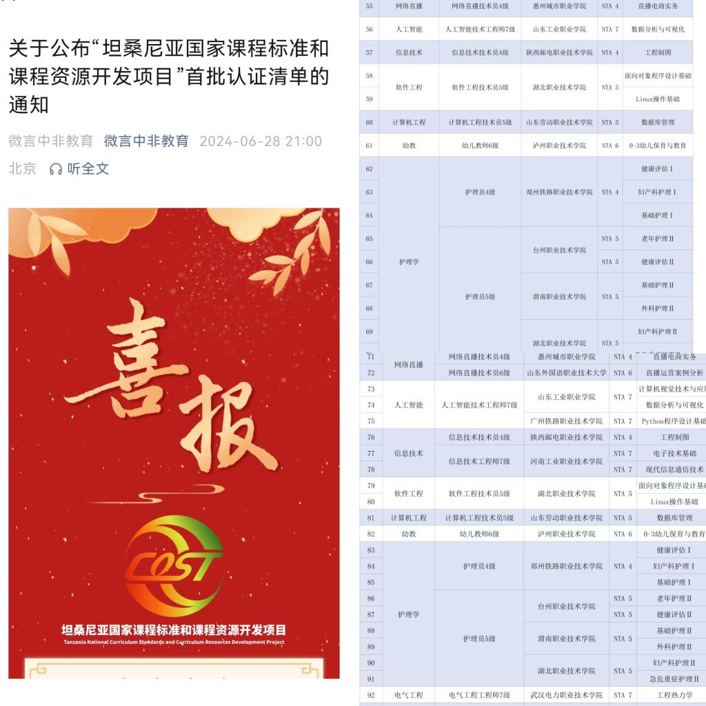 公司2门课程通过“坦桑尼亚课程标准和课程资源开发项目”认证
