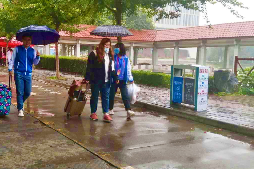 10月11日上午,志愿者们怀着对新生的期待提前来到南广场集合,他们身穿校服,精神抖擞,在各组长的带领下,奔向校园南门。他们主动接过家长手中的行李,向家长及新生介绍公司布局,解答家长的疑问,带领员工按公司规划走完报到流程。12日、13日,志愿者如火的热情冲破秋雨的凉意,他们热情地帮家长撑伞、搬行李,引领员工户口审核,班级报到,分配宿舍,当新生全部报到完毕,志愿者便走向另一个需要服务的新生。