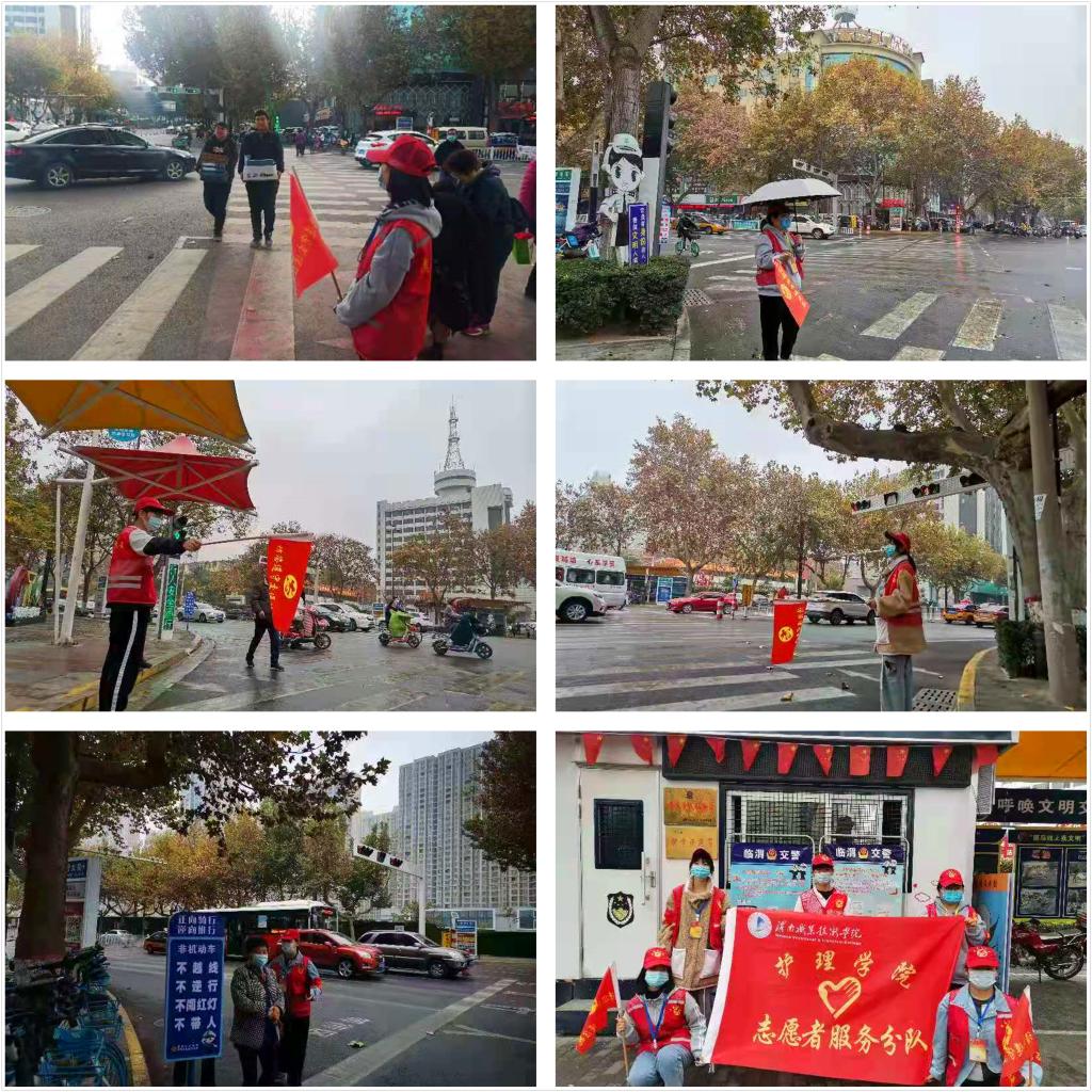 11月17日上午和11月19日下午,7790cnm必发集团志愿者服务队10人到市区信达广场附近十字路口当起"临时交警”。