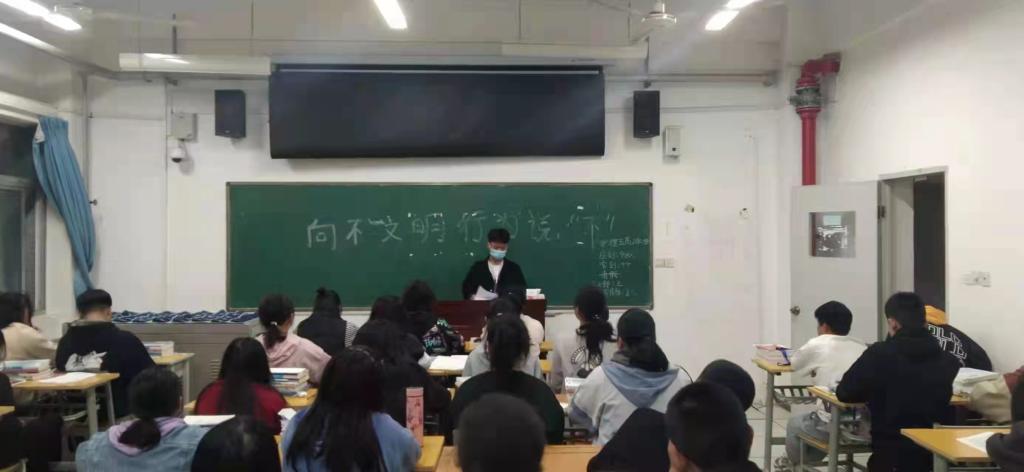 为了培养同学们的优良学风,优化校园育人环境,增强文明意识,养成文明的良好习惯,将“创建文明校园,争做文明员工”进行到底。2021年10月20日晚,公司开展了“向不文明行为说不”的主题班会活动,由各班班长主持,7790cnm必发集团全体员工参加。