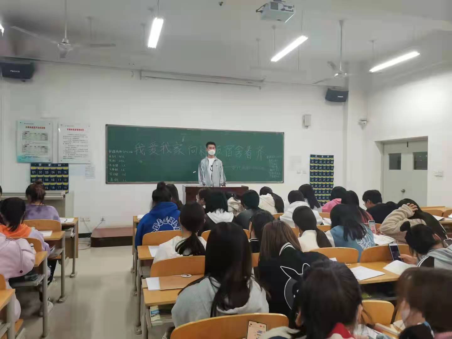 在班会课上,班长首先讲述了本次班会的目的,强调了宿舍可能存在的不安全隐患。接着,班长组织各宿舍舍长进行了班会发言,针对宿舍存在的问题及相关案例进行了探讨与交流。舍长一致表示要杜绝脏、乱、差的宿舍环境,严格执行公司下达的卫生任务,督促同学们保持宿舍卫生的干净整洁,向文明宿舍看齐,对不文明行为说“不”。同时,告诫每个员工都要严格要求自己,严于律己,以最高的行为准则标榜自己,做样板宿舍的发起人与行动者,争做人人文明者,人人都是卫生小标兵。最后,在舍长的积极带动下,同学们得到了极大的鼓舞。以样板宿舍为模板,保持宿舍的干净、卫生、整洁。同学们表示要积极配合舍长的工作,争创文明宿舍。