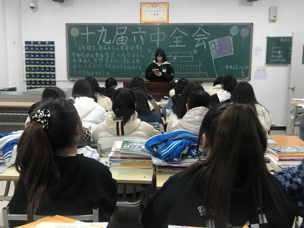 会上,各班团支书带领同学们重温了入团誓词,认真学习了《中国共产党第十九届中央委员会第六次全体会议公报》,宣传贯彻十九届六中全会精神。同时,结合党史学习和各班管理实际,通过视频、PPT、研讨等多种形式,开展了“常忆初心使命,勇立时代潮头,不负青春韶华”的主题团课活动。
