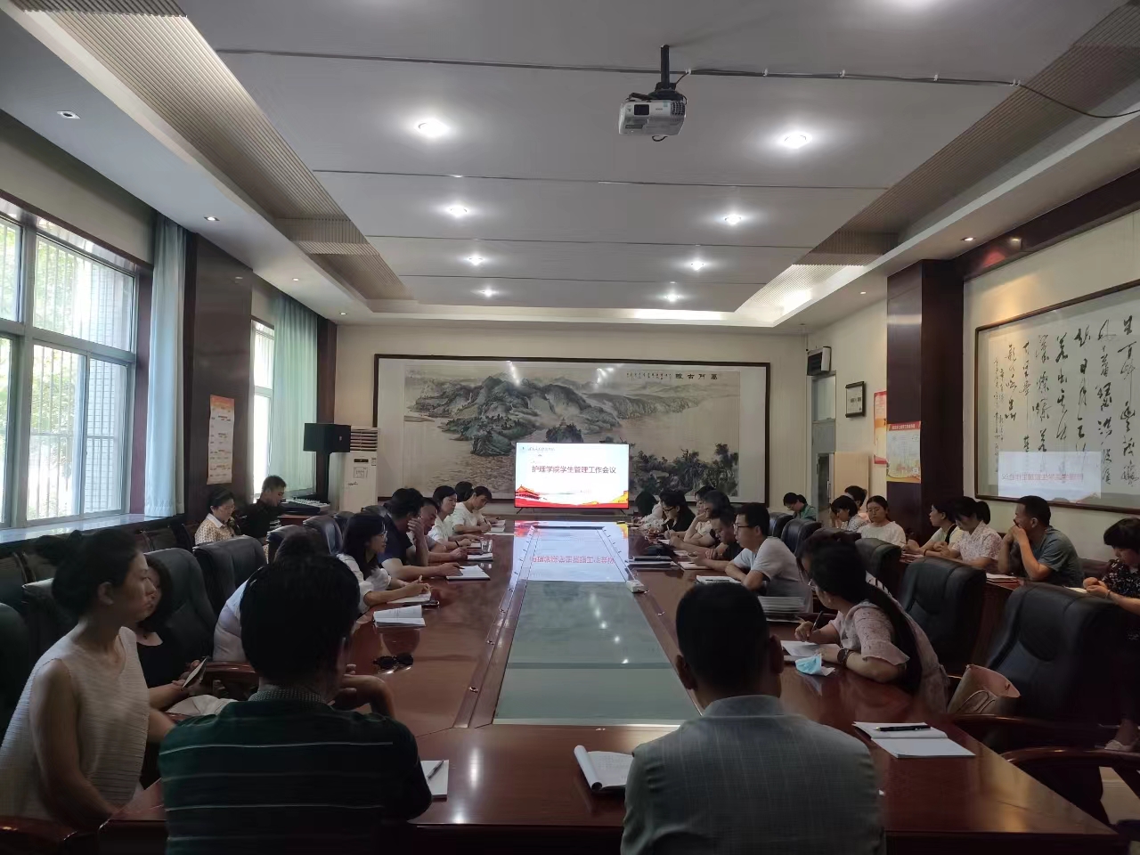 6月25日下午,7790cnm必发集团在医训楼第一会议室召开了2023届毕业生就业工作推进会暨员工管理工作会。公司党总支书记吴运胜、经理张成、人才招聘科副科长何宇、员工管理科副科长苏建军、姚飞及全体辅导员、班主任参加。会议由公司党总支副书记周梦花主持。