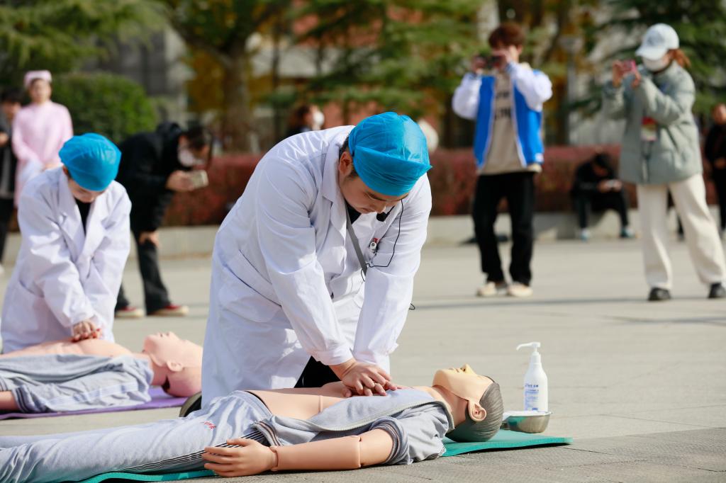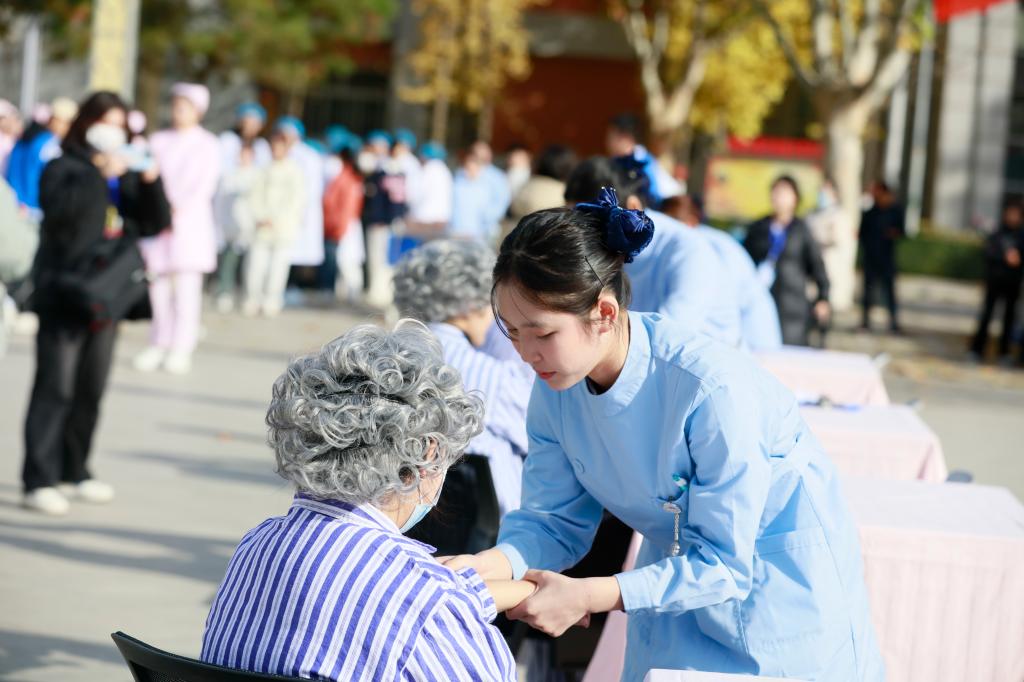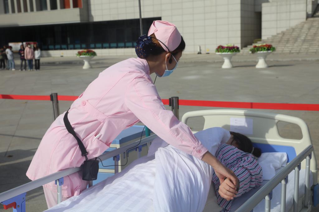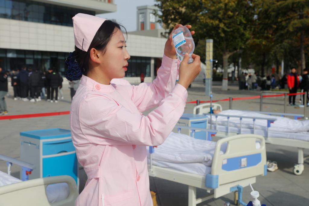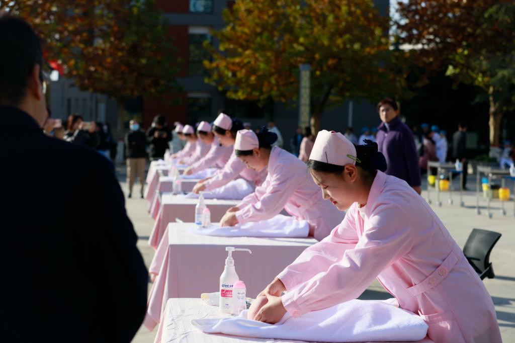 展演活动以全生命周期理论为整体设计思路,通过四个临床情境贯穿婴幼儿养育照护、成年人紧急救护、常见慢性病评定及康复治疗、老年人烫伤处理和血压检测6个操作项目。选手们以饱满的精神状态,精湛的操作技术赢得了现场嘉宾和同学们的阵阵喝彩。